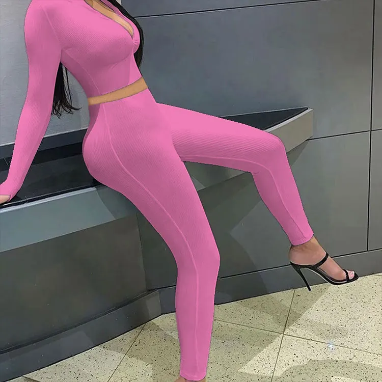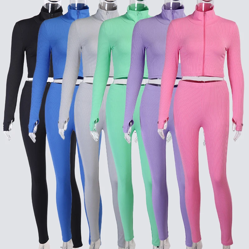 Huilil Custom Logo High Quality Slimming Yoga Bodysuits Legging Sets 2-Piece for Lounge Wear with Zipper Ribbed Outfits Short